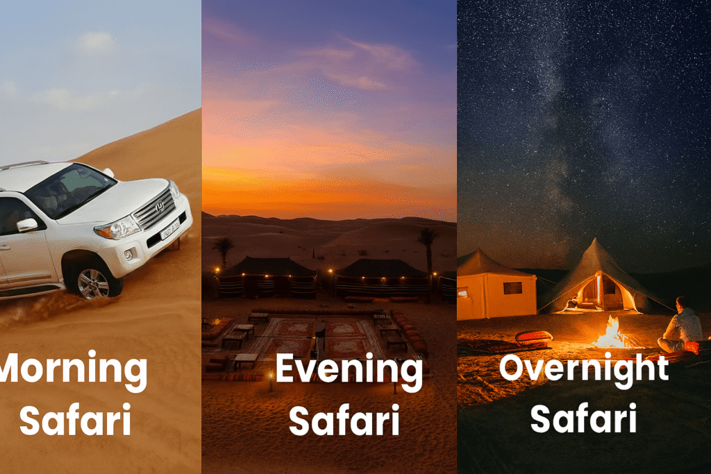 Everything you need to know about Morning vs Evening vs Overnight Dubai Desert Safari – Which Experience Should You Book? Dubai’s desert is a world of golden dunes, thrilling adventures, and Arabian hospitality. Choosing the right safari timing can make all the difference in your experience. Should you book a morning desert safari, an evening desert safari, or immerse yourself in an overnight desert safari? Each option offers unique highlights, and this guide will help you decide which one matches your travel style.